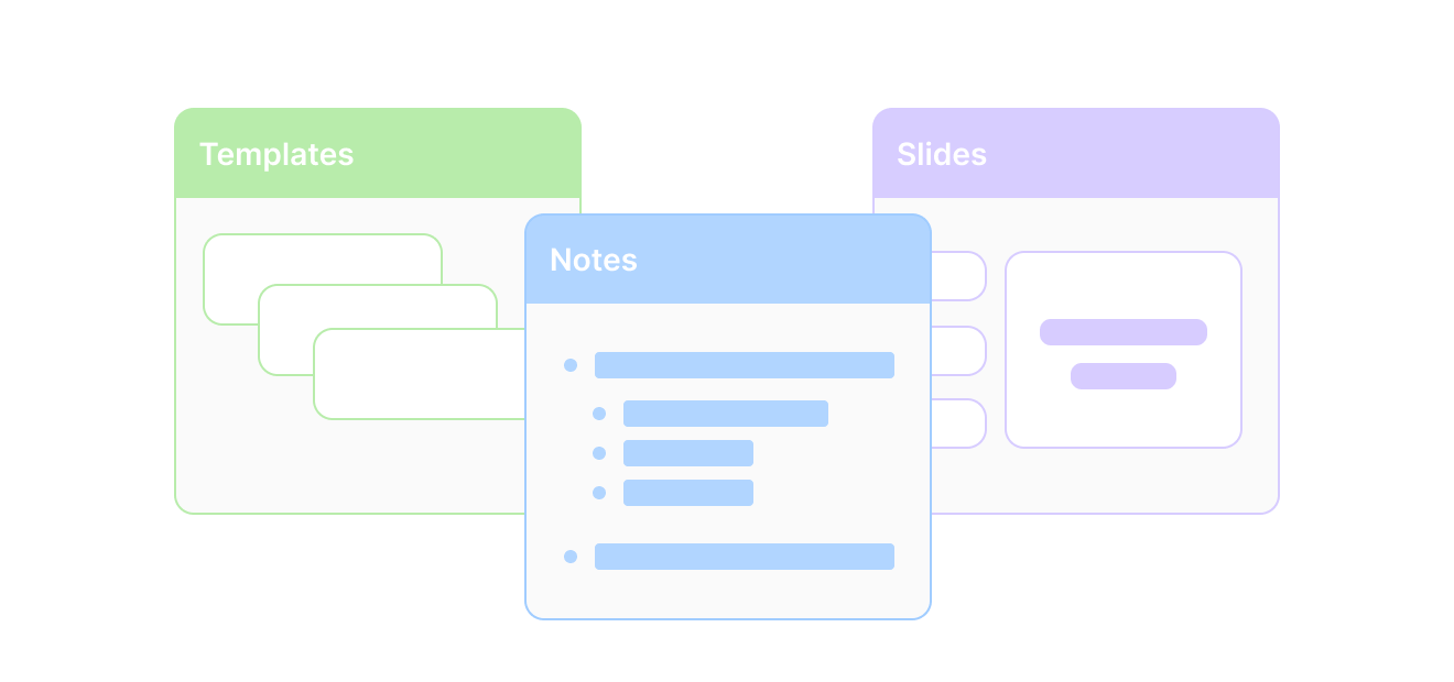 Transforms transcripts into structured outputs like mind maps, slide decks, and spreadsheets—making complex content easier to review, present, and apply.